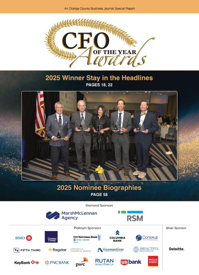 The Orange County Business Journal’s CFO of the Year celebrates the financial leaders shaping the region’s most dynamic companies. Featuring in-depth profiles of all 75 nominees, this section offers a rare look at the executives driving growth, navigating complexity, and delivering strategic impact across Orange County’s business landscape.
