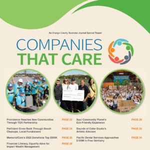 The Orange County Business Journal is pleased to announce the 2022 Companies That Care. These companies have gone above and beyond for the OC community through philanthropic efforts and accomplishments. They are making Orange County a better place to live.