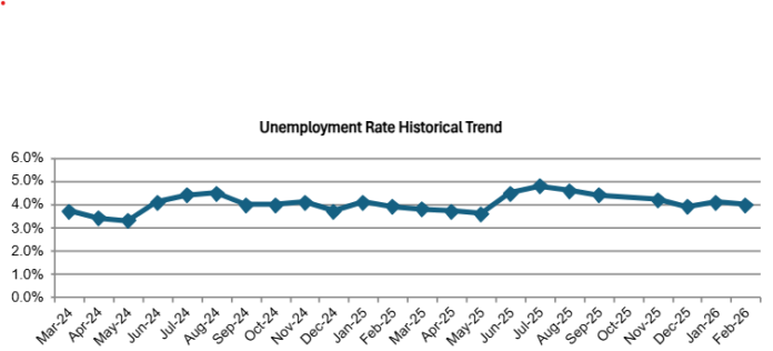 Orange County’s unemployment rate fell to 4.0% in February from a revised 4.1% in January and above the 3.9% in February last year, according to the state’s Employment Development Department.