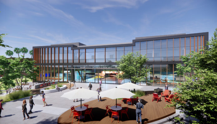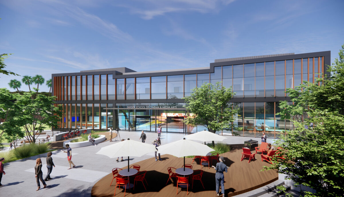 The Snyder School facility will span 45,463 square feet across three floors and include a new 3,000-square-foot soundstage, a 285-seat theater, suites for color grading and audio mixing, stages for scoring and recording, a game design lab and multiple other spaces for students to occupy.