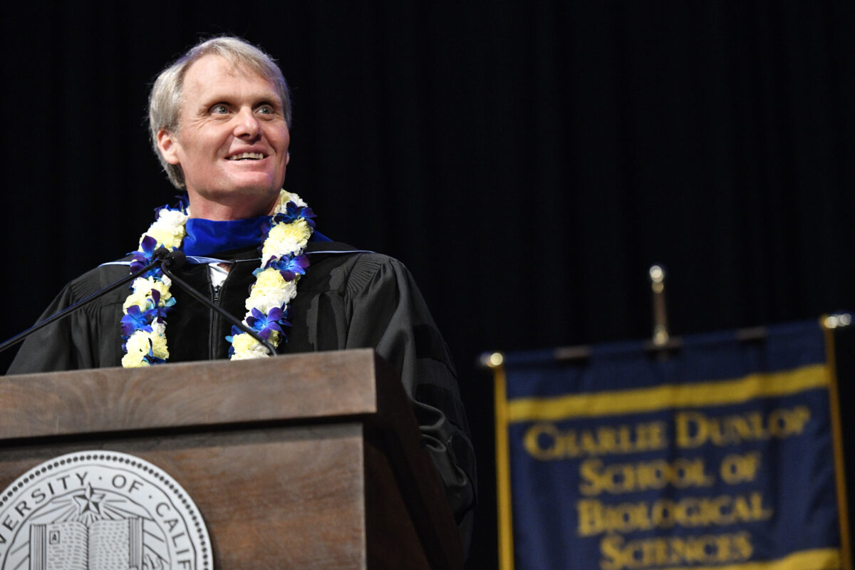 During the commencement in June, UCI officials announced the gift from biotech entrepreneur Charles Dunlop, who was the featured speaker.