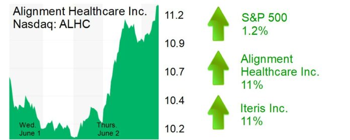 Alignment Healthcare Inc. (Nasdaq: ALHC) jumped 11% to $11.31 and a $2.1 billion market cap. Volume at the Orange-based provider of Medicare Advantage plans was about a third of the daily average. The stock has almost doubled since its 52-week low of $6.14 in January.