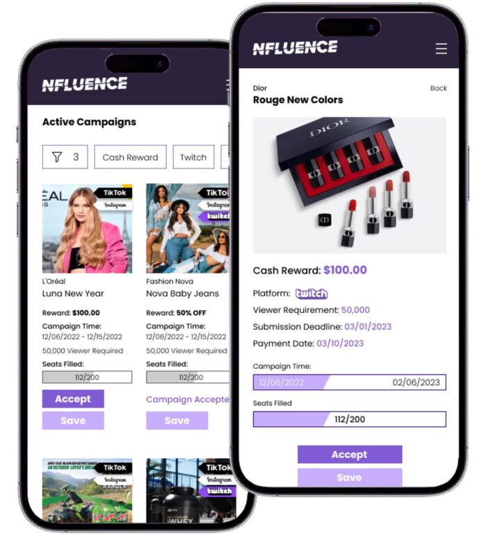 Nfluence started out as a marketplace catering to content creators from the likes of Twitch, Instagram, YouTube and TikTok.