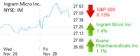 Santa Ana-based Ingram Micro Inc. was up 1.4% on news of its acquisition of Paris-based Anovo, which provides logistics and repair services for technology products. Terms of the deal weren’t announced. The companies said Anovo is expected to bring about $300 million in annual revenue. Ingram Micro, the world’s biggest distributor of computers, software and other technology products, had a recent market capitalization of $4.3 billion.