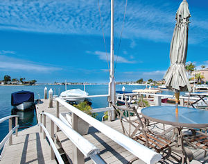 The two-story Craftsman-style home, built in 1986, has three bedrooms and two bathrooms. It has a sunset view and looks out at the islands of Lido, Bay, Harbor and Collins.