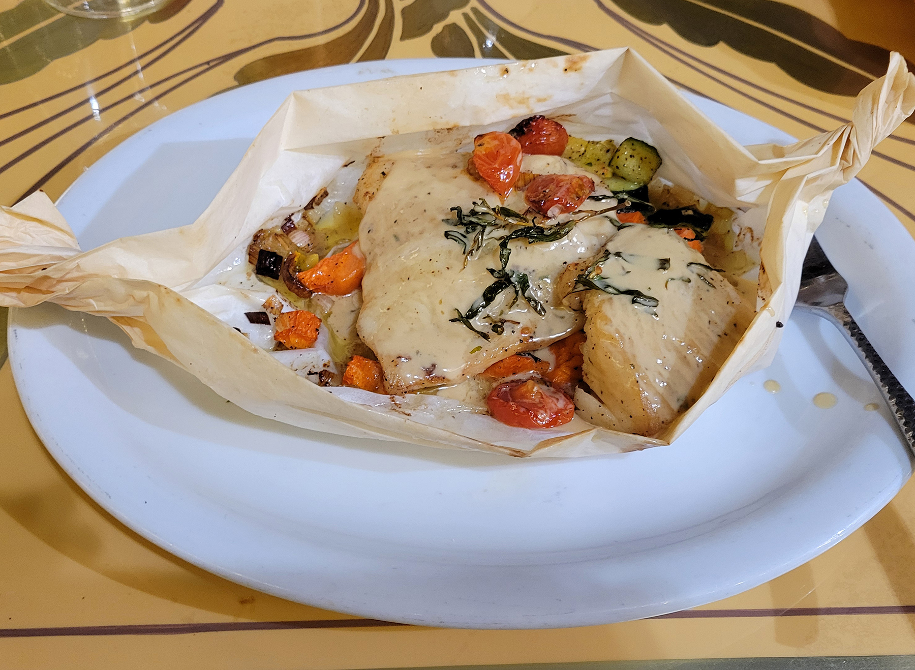 Other dishes I swooned over: artichoke tartare, rabbit so tender it was practically falling off the bone, escargot served in shells and a sensational Atlantic cod baked papillote style (in parchment paper) with seasonal vegetables and a touch of soy. This was my favorite dish—it melted in my mouth and the combination of flavors along with the savory sauce lingered on my palate.