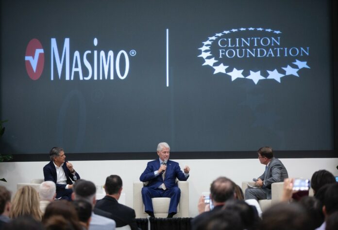 Former President Bill Clinton appeared at device maker Masimo Corp.’s (Nasdaq: MASI) headquarters on June 28 for a talk addressing the opioid crisis with Chief Executive Joe Kiani.