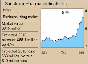 Wall Street expects Spectrum to post a loss of about $60 million for 2010, no surprise for a developing drug company.