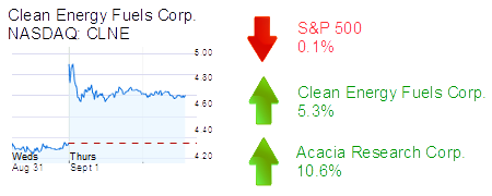 Newport Beach-based Clean Energy Fuels Corp. was up 5.3% to $4.60 and a $603 million market cap. The natural gas fueling station operator won a contract to supply about 600 transit vehicles in Washington, D.C. with 6 million ‘gasoline gallon equivalents’ of compressed natural gas.
