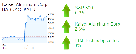 Foothill Ranch-based Kaiser Aluminum Corp. was up 2.6% to $80.68 and a $1.4 billion market cap on moderate volume. The company is a metals maker.