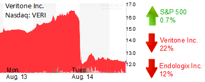 Costa Mesa-based Veritone Inc. (Nasdaq: VERI) plunged 22% to $12.27 and a $221 million market cap. The company, which is trying to break into artificial intelligence, reported second quarter results that missed Wall Street expectations. (See related web article here and related print article here).