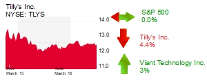 Men’s and women’s retailer Tilly’s Inc. (NYSE TLYS) in Irvine was down 4.4% to $12.40 per share for a market cap of $369 million, while Irvine-based retailer of boots and other apparel Boot Barn Holdings Inc. (NYSE: BOOT) lost 3.5% to $60.81 per share for a market cap of $1.8 billion. Bad weather and a delay in government aid pushed U.S. retail sales down 3% in February, the Commerce Department reported today, a greater-than-expected drop.