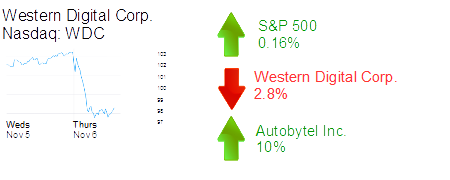 Irvine-based Autobytel Inc. was up 10% to $10.28 and a market cap of $93 million on a 26% increase in third quarter revenues. It reported $27.4 million in revenue this year compared with $21.6 million year-over-year. Gross profit grew 25% to $11 million and third quarter net income was $1.1 million, down from $1.3 million in the same period last year.