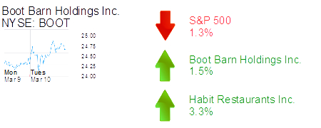 Irvine-based Boot Barn Holdings Inc. is up 1.5% to $24.58 and a $632 million market cap. BB&T Capital Markets initiated coverage on the company today with a “buy” recommendation.