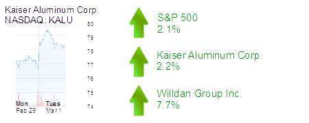 Foothill Ranch-based Kaiser Aluminum Corp shares were up 2.2% to $78.26 and a market cap of $1.4 billion after shares in the producer of semi-finished aluminum products were upgraded to a “buy” by Deutsche Bank and raised its price target to $90 from $85.