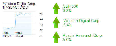 Newport Beach-based Acacia Research Corp. was up 5.6% to $5.50 and a $277 million market cap. The patent licensing company’s shares have risen about 15% since Northland Capital upgraded Acacia to an “outperform” rating.