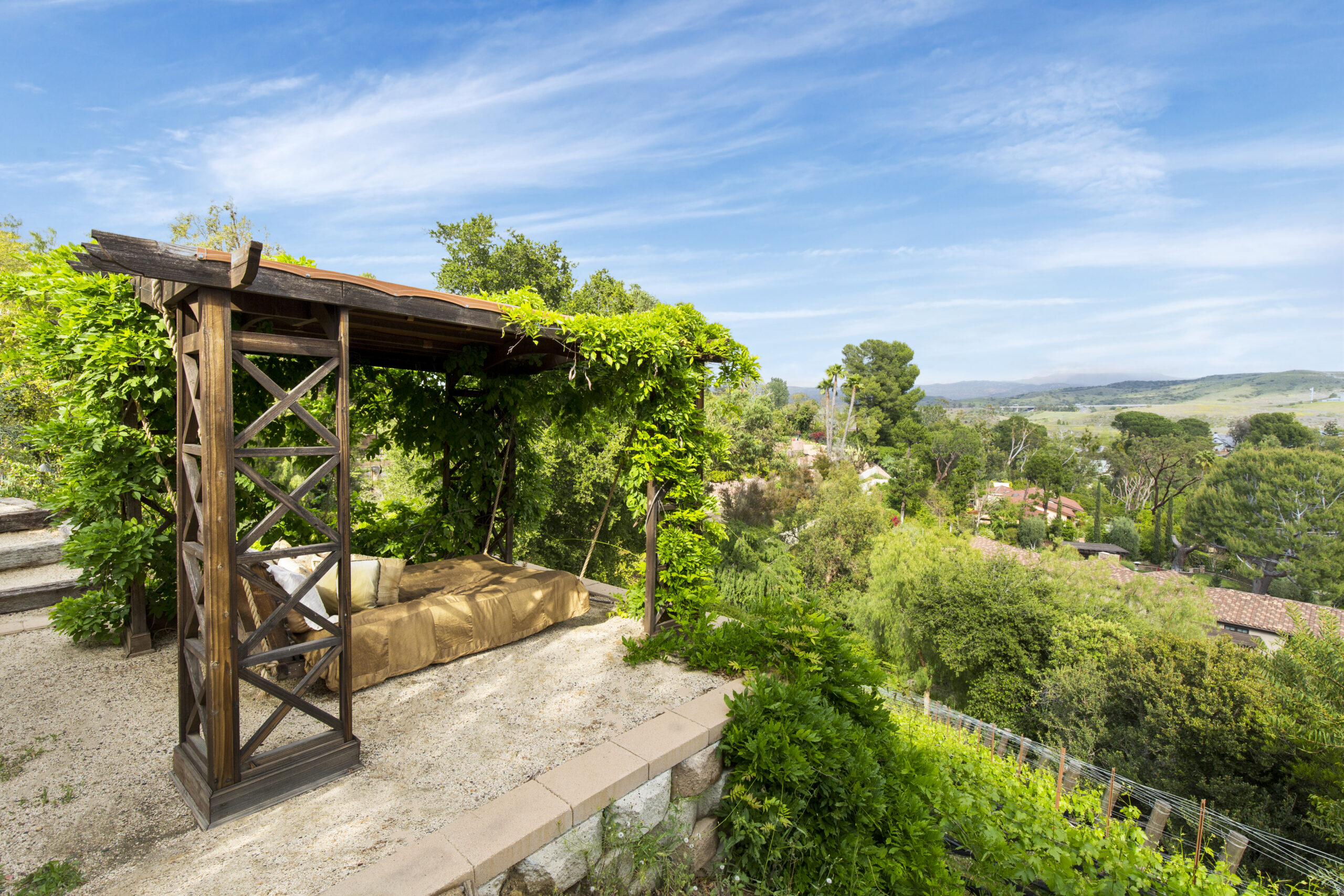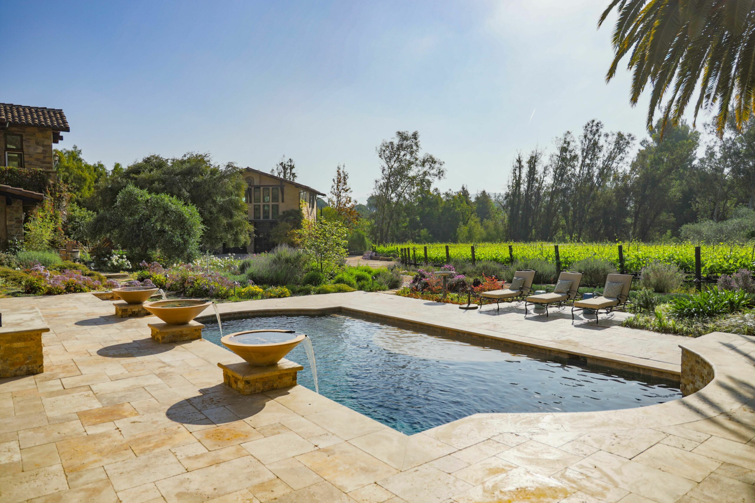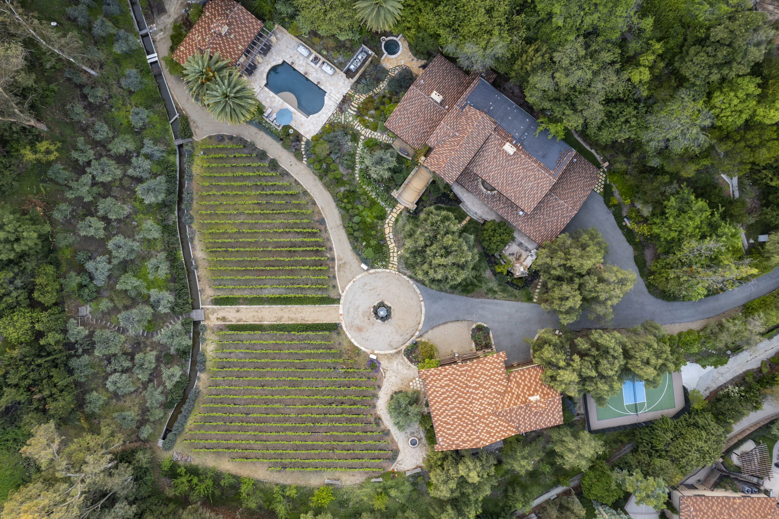 The lot is reported to be the largest of its kind in the North Tustin neighborhood, and the vineyards adjacent to the home have produced Sangiovese, Cabernet Sauvignon and Petite Syrah wines under the Peppertree Canyon label since 2016.