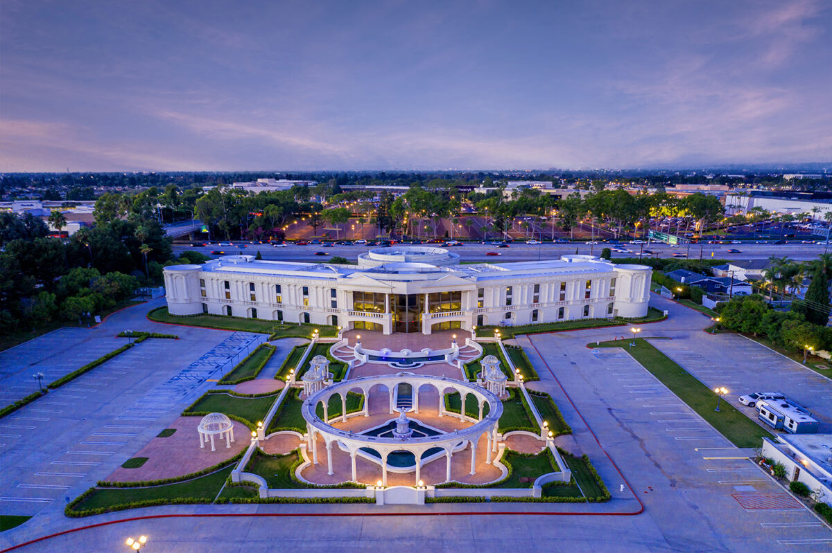 Trinity Broadcasting Network, founded in 1973, constructed the ornate, 70,799-square-foot Bear Street building, which served as its headquarters in 1976. The building and campus included film studios, a theater and outdoor parking facilities.
