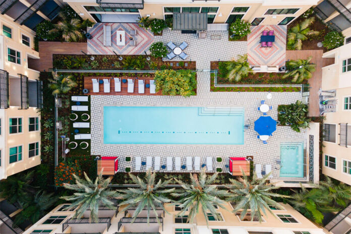 The building also includes more than 6,500 square feet of retail and restaurant space and a 944-square-foot pool, spa and other amenities.