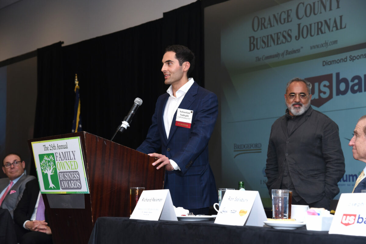 “Growing up in the Midwest, I am a true believer that our country’s built on small businesses,” Sadeghi told a crowd of 300 after being honored as one of five winners at the Business Journal’s 25th annual Family-Owned Business Awards on May 30 at the Irvine Marriott with his eldest son Sebastian by his side, earning the company an award in the up-and-coming category.