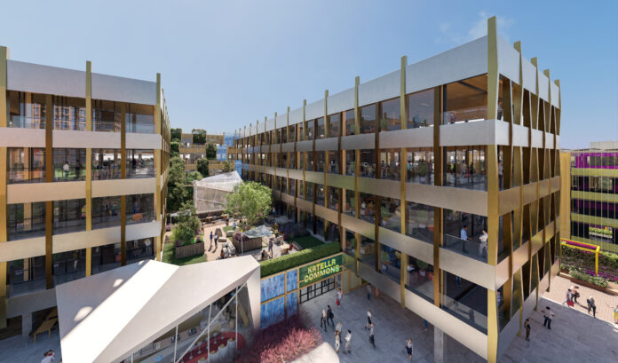 Named after the neighboring Katella Avenue, the 50,000-square-foot market hall occupies the first two floors of The Weave office building, which is currently under construction at the $4 billion mixed-use entertainment district in Anaheim near the Honda Center.