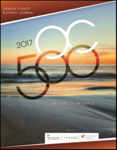 The Orange County Business Journal’s OC500 Directory of Influence is an annual publication celebrating the most impactful leaders, innovators, and change-makers in the Orange County business community. Each year, the OC500 profiles individuals who have made significant contributions across various sectors.