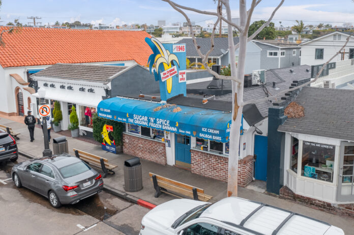 One of Balboa Island’s iconic frozen banana stands, arguably the best-known commercial real estate property on the harborside community, is on the market for sale.
