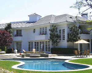 The estate has a long driveway and gated entrance. It’s secluded enough to have a pool in the front yard. The house and the guest house overlook the pool.