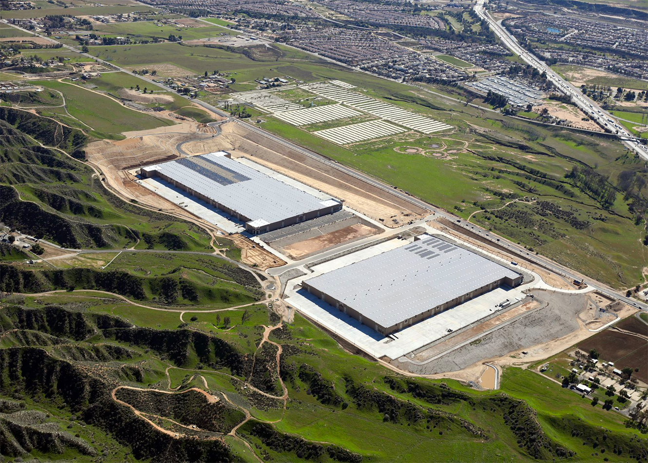 Shopoff and Artemis kicked off construction in April 2021; the property includes two buildings—815,000 square feet and 1 million square feet—designed for LEED Silver Certification, with solar panels to offset all energy usage.