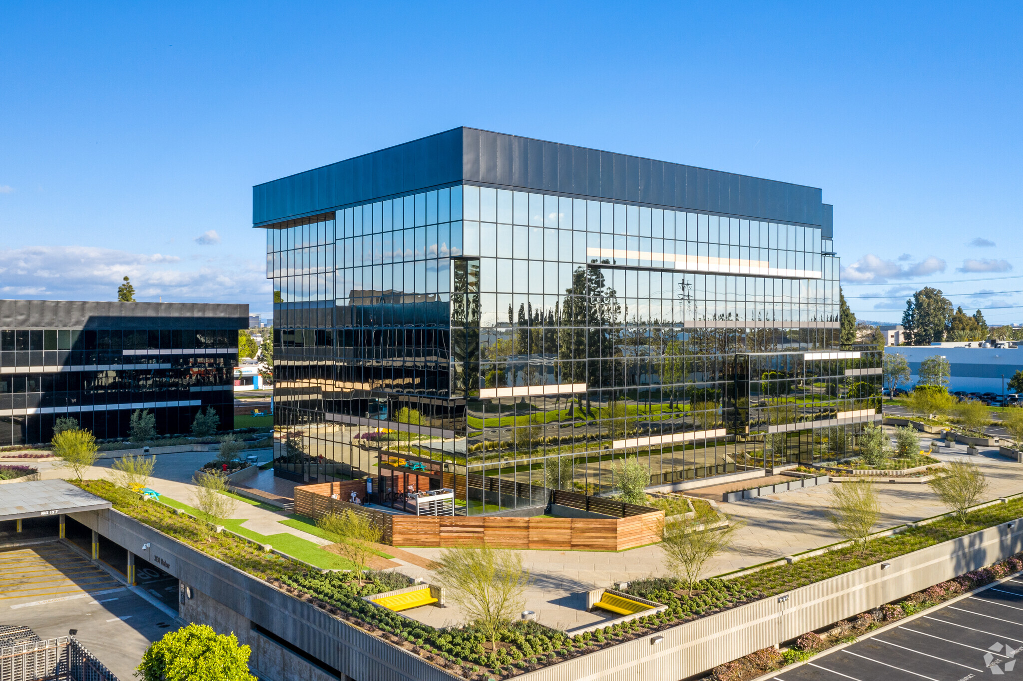 The largest office tenant at Elevate is Optima Tax Relief, which takes north of 90,000 square feet across both buildings.