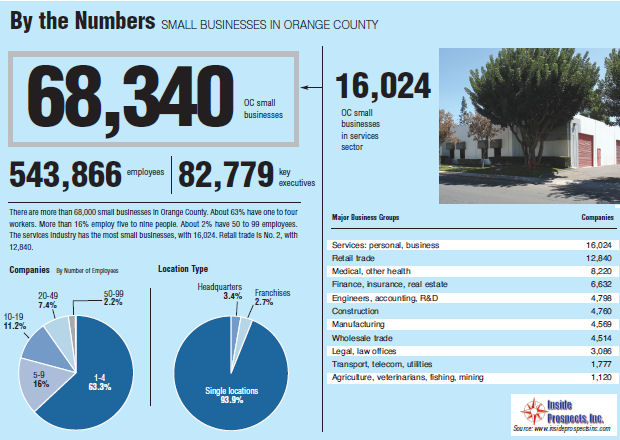 There are more than 68,000 small businesses in Orange County. About 63% have one to four workers. More than 16% employ five to nine people. About 2% have 50 to 99 employees.