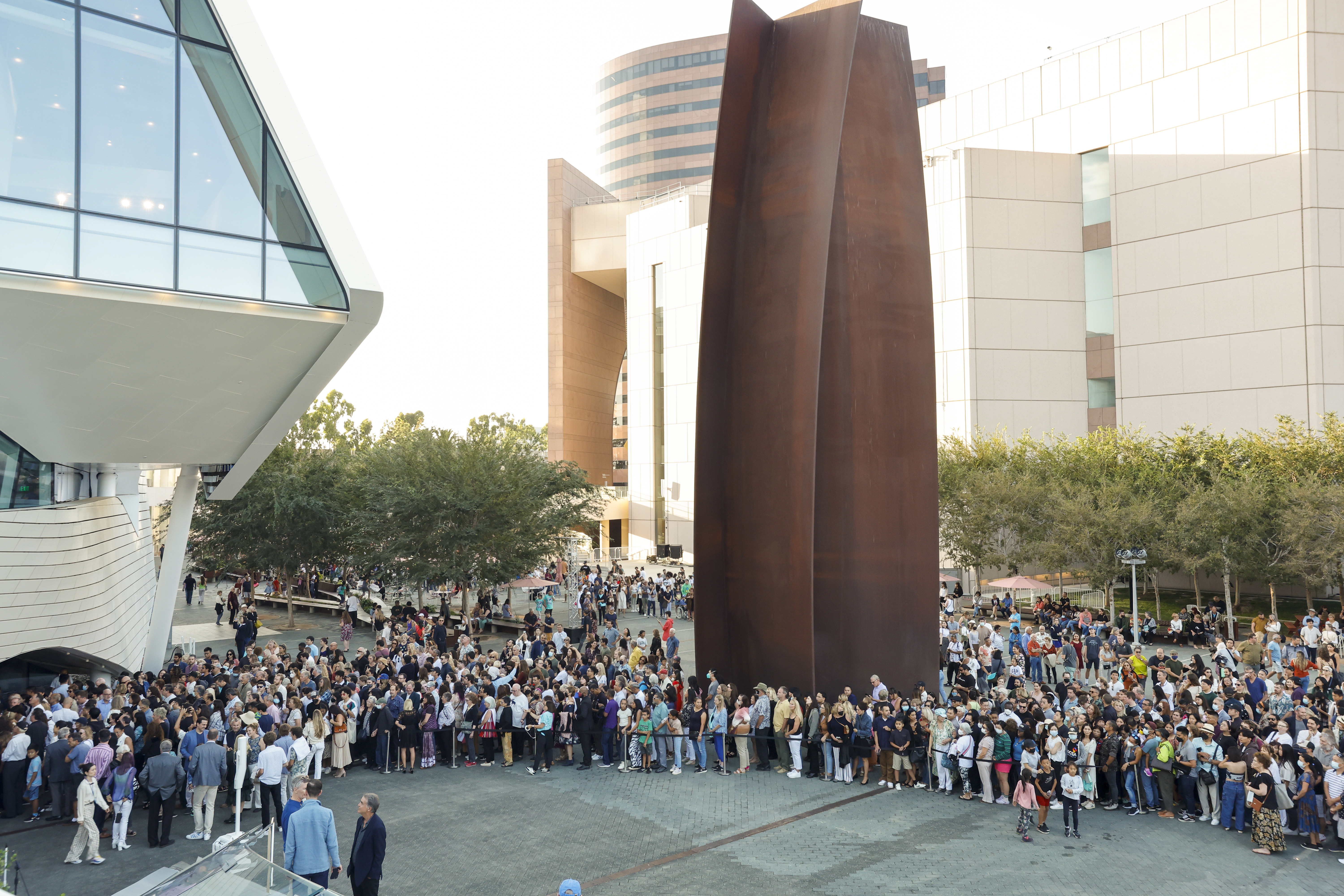 It was designed by Brandon Welling and Thom Mayne of the Morphosis architectural firm; the latter was a 2005 winner of the Pritzker Prize for his design of Diamond Ranch High School in Pomona. Mayne previously said he didn’t want to build “a shiny object,” but rather a place where the community can gather for events.