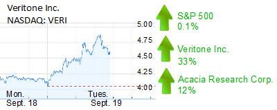 Newport Beach’s Acacia Research Corp. (Nasdaq: ACTG) climbed 12% to $4.55 and a $230 million market cap. The shares of Acacia, which owns 31% of Veritone, have climbed about 61% since its 52-week low in August.