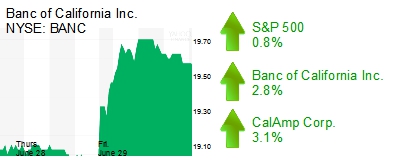 Santa Ana’s Banc of California Inc. (NYSE: BANC) climbed 2.8% to $19.58 and a $990 million market cap. Orange County’s largest bank by assets yesterday announced plans to cut its workforce by 9% to align its cost structure to focus on commercial banking. It currently employs 786, implying it will trim 71 jobs.