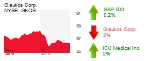 San Clemente medical device maker Glaukos Corp. (NYSE: GKOS), which focuses on ophthalmic-related treatments, was down 2% to $57.70 for a market value of $2.5 billion.