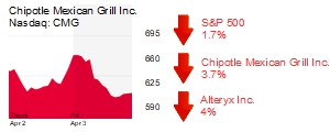 The S&P 500, Dow Jones, and Nasdaw were each down 1.7%, to 2,485.11, 21,060.12; and 7,364.80.