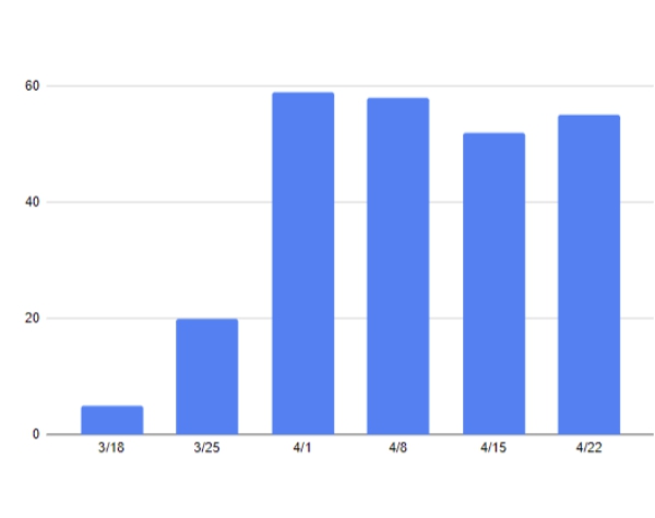 For the week ending April 22, an average of 55 new coronavirus cases were reported each day, up from the 52 average cases reported the week prior.